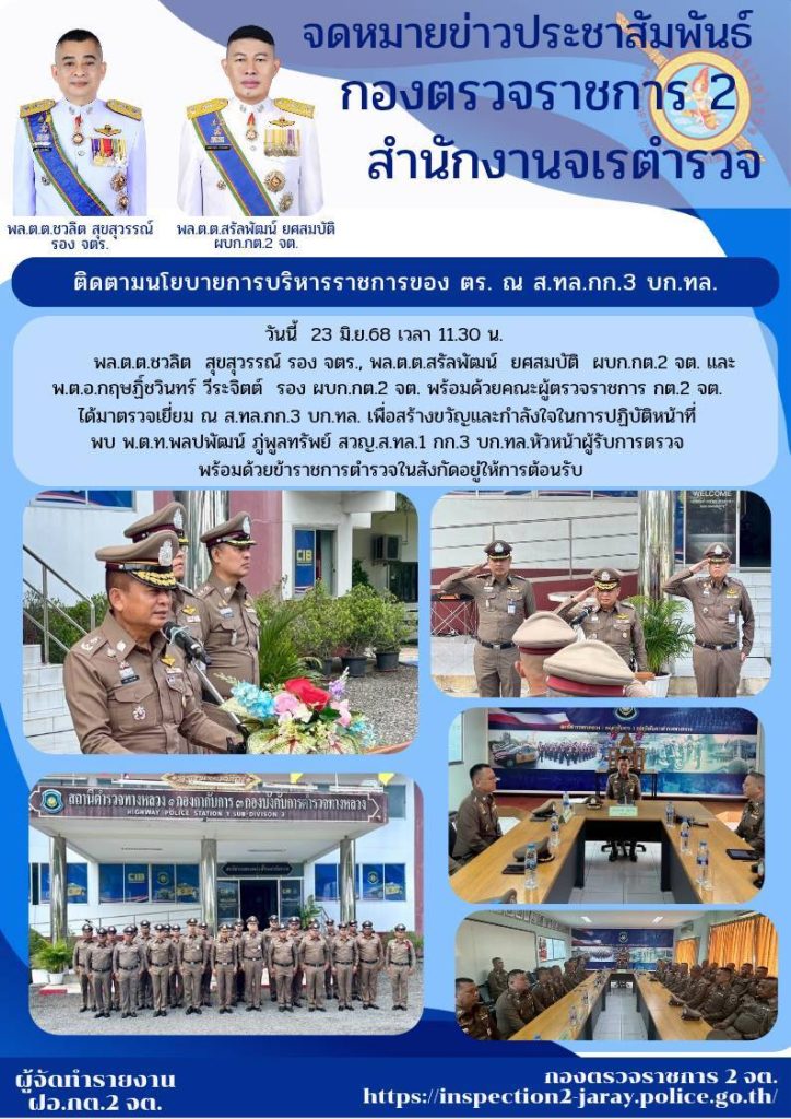ติดตามนโยบายการบริหารราชการของ ตร. ณ ส.ทล.กก.3.บก.ทล 23 มิถุนายน 2568 โดย admin / ข่าวประชาสัมพันธ์,ข่าวกิจกรรม,ข่าวประชาสัมพันธ์,ข่าวภารกิจผู้บังคับบัญชา Facebook iconFacebookTwitter iconTwitterLINE iconLine